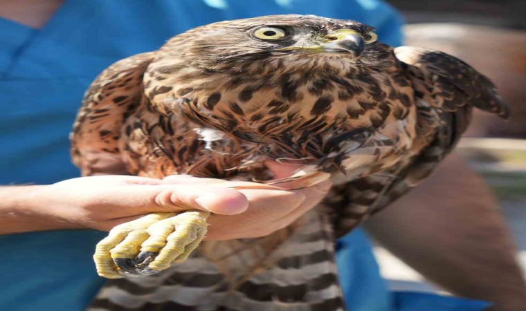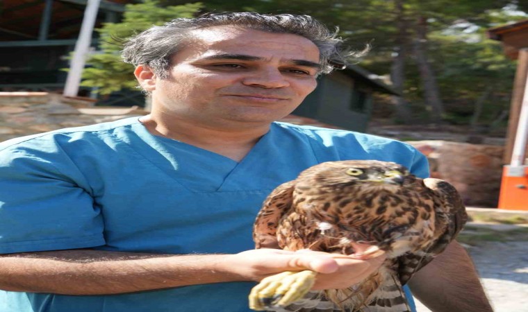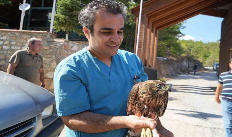 Yaralı ve bitkin bulunan kızıl şahin, Kazdağları Milli Parklar Şefliği’nde tedavi ve rehabilitasyon süreci tamamlanarak doğaya salındı.