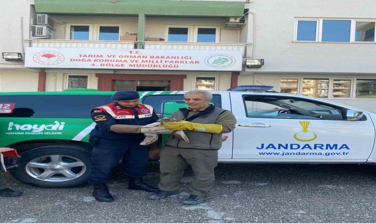Manisa’nın Yunusemre ilçesinde yaralı halde bulunan şahin, jandarma ekipleri tarafından tedavi edilip doğal ortamına bırakılması için Manisa Doğa Koruma ve Milli Parklar Şefliğine teslim edildi.