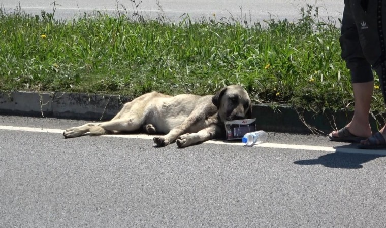 Samsun-Ordu karayolu üzerinde plakası tespit edilemeyen bir aracın çarptığı köpek için çevredeki esnaflar ve vatandaşlar seferber oldu.