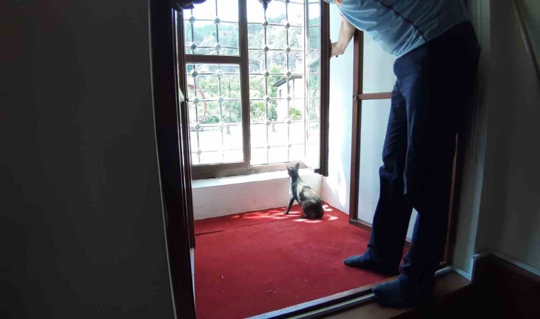 Bolu’nun Mudurnu ilçesinde tarihi Yıldırım Beyazıt camiine giren kedi, minberin arkasında bulunan boş alana düştü. Alçıpanın uzun uğraşlar sonucu kırılmasıyla yaramaz kedi kurtarıldı.
