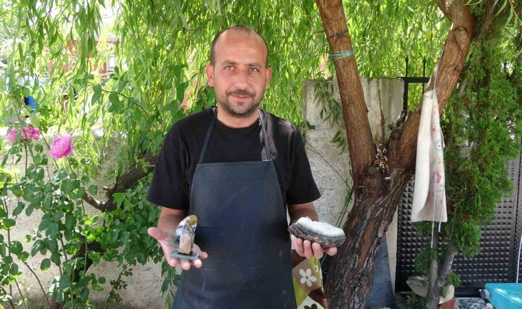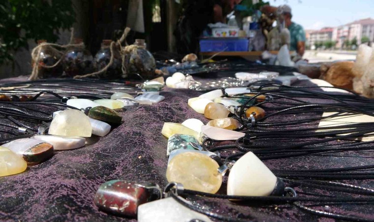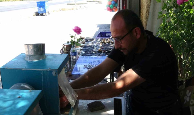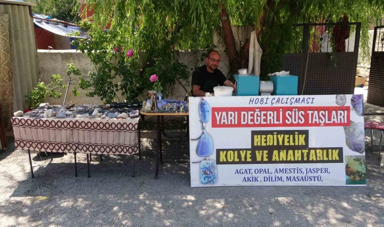Yozgat’ta yaşayan Sinan Pınarcı, esnaflığı bırakmak zorunda kaldıktan sonra doğadan topladığı ametist, akik, jasper, kalsedon gibi renkli ve yarı değerli taşları seyyar tezgahında işleyip takı ve süs eşyasına çeviriyor.