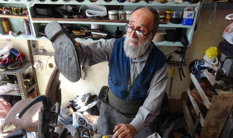 Yozgat’ta ayakkabı tamirciliği mesleğini ilk günkü heyecanla 50 yıldır sürdüren Bekir Tansel, “Dünyaya bir daha gelsem ayakkabı tamircisi olurum, mesleğimi severek yapıyorum” dedi.