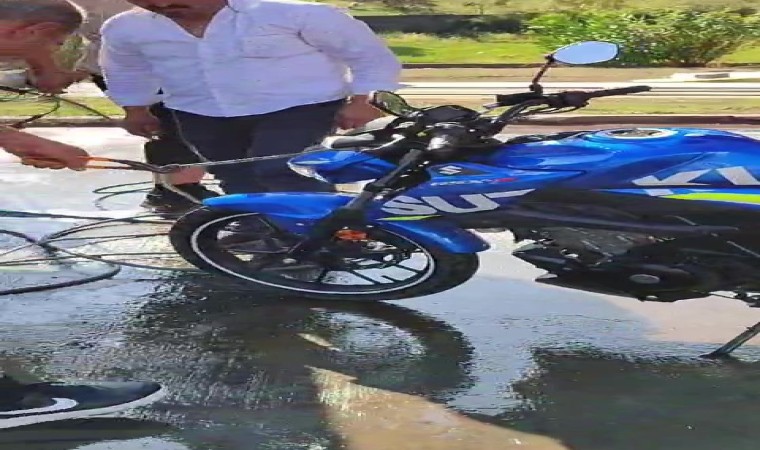 Samsun’da yolda seyir halinde olan yarış motorunun direksiyonundan bir anda yılan çıktı. Yılanla karşı karşıya kalınca şok yaşayan kadın sürücünün yardımına akaryakıt istasyonu çalışanları yetişti.