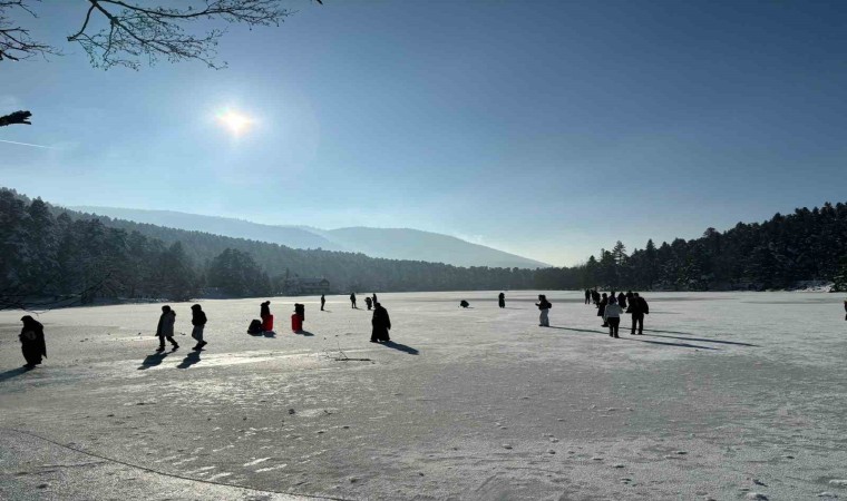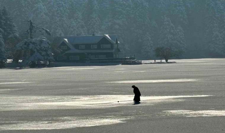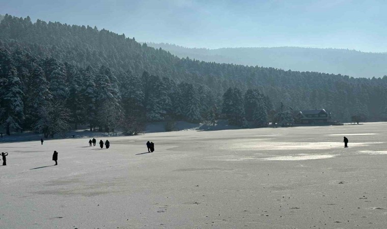 Bolu’nun doğal güzelliklerinden olan Gölcük Tabiat Parkı içerisinde bulunan gölün tamamı buz tuttu. Yasak ve tehlikeli olmasına rağmen buz tutan gölün üzerinde vatandaşlar metrelerce yürüdü.