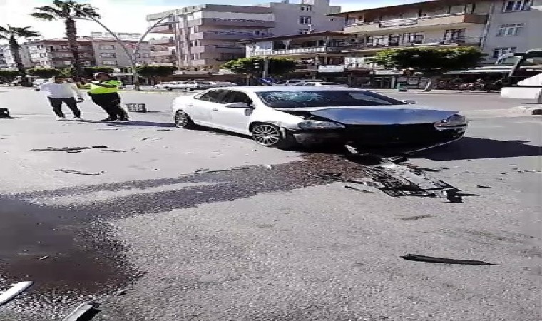 Antalya’da sola dönüş yasağı bulunan ışık sisteminde dönmeye kalkan otomobil, diğer yönden gelen bir başka otomobille çarpışırken kaza anları güvenlik kamerasına yansıdı.
