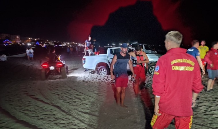 Olayı anlatan Cem Süt, “Biz oturuyorduk, arkadaşlar yüzüyordu o esnada imdat diye bağırış seslerini duyduk. Simitle birlikte suda bulunan kadını kurtardık. Ama adam dalgalar arasında kaldı, biz de simitle zor bela geri gelebildik karaya. Erkek şuan hala denizde, akıntı onu aldı götürdü.” diye konuştu.