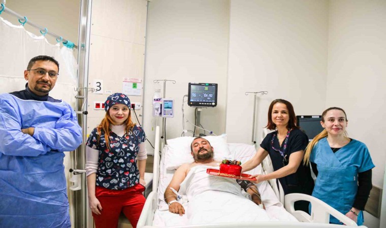 Antalya’da yaşayan 41 yaşındaki Ömer Hancı, doğum gününde kalp krizi geçirince acil anjiyo yapıldı. Hancı’nın yarım kalan doğum günü sevincini yoğun bakım ünitesinde hastane personeli tamamladı. Gözlerini açtığında karşısında doğum günü pastasını gören Hacı, "Doktorların ve hemşirelerin ilgisi sayesinde ikinci hayatımı yaşıyorum. Doğum günü pastasıyla beni çok mutlu ettiler" sözlerine yer verdi.
