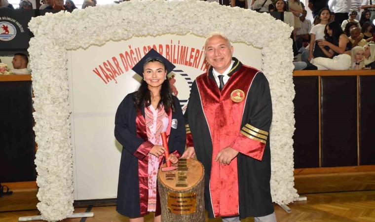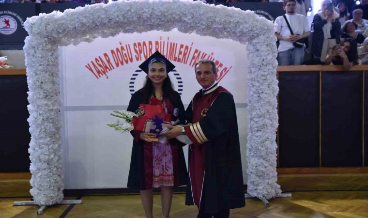 Dört yıllık eğitimini başarıyla tamamlayan ve Fakülte birinciliğini hak eden Yağmur Naz Aydın ise “Bizler bugün burada, sporun ve bilimin birleştirici gücü sayesinde toplandık, elde ettiğimiz başarılar, sadece bir başlangıç. Spor biliminin ve sporun gücüne inanarak, daha büyük hedeflere ulaşacağımıza ve topluma değer katacağımıza eminim. Her birimiz, farklı alanlarda yeteneklerimizi ve bilgi birikimimizi kullanarak, sağlıklı ve başarılı bireyler olarak topluma katkı sağlayacağız” şeklinde konuştu.