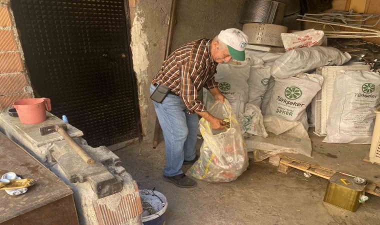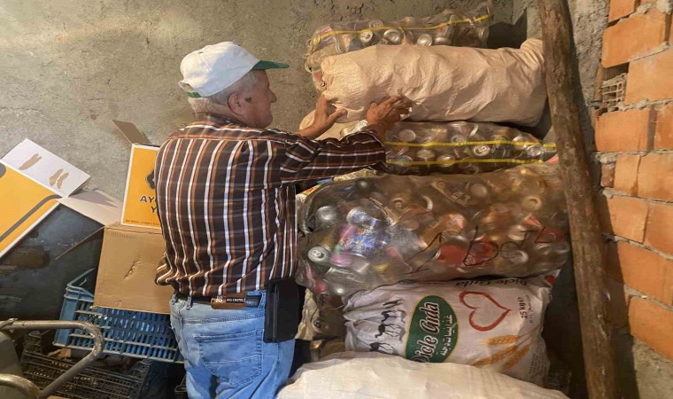 Eskişehir’de sol gözü tamamen görmeyen 78 yaşındaki emekli vatandaş Hüseyin Özçelik, hem eve fazladan para götürmek hem de boş zamanını değerlendirmek için geri dönüşüm içşiliği yapıyor.