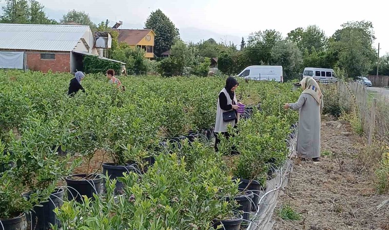 Yaban mersini almak için Muhammet Bilal Köse’nin tarlasına gelen vatandaşlar, meyvelerin yetiştirilmesi hakkında Köse’den bilgi alıyorlar. Vatandaşlar ayrıca yiyecekleri yaban mersinlerini de dalından kendileri hasat ederek, taze taze kendi meyvelerini topluyorlar.