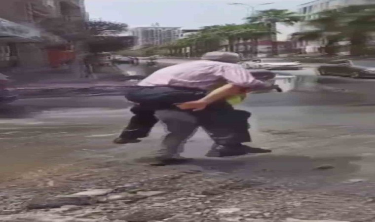 Yaşlı adamı sırtında taşıyan polis memuru takdir topladı
