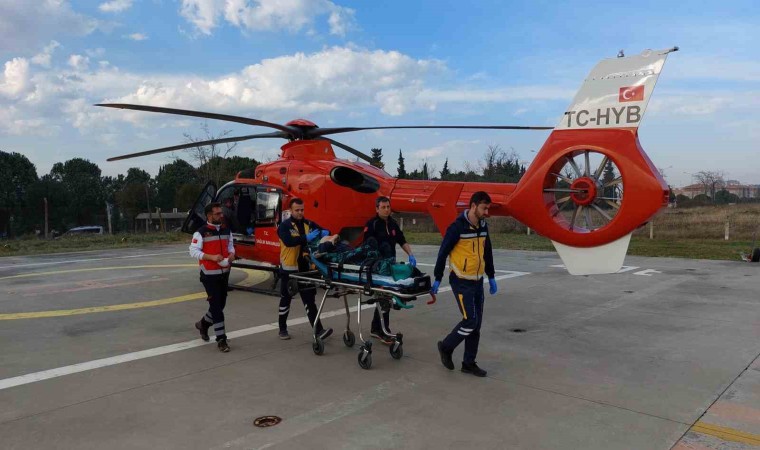 Samsun’da rahatsızlanan 81 yaşındaki kadının yardımına ambulans helikopter yetişti.