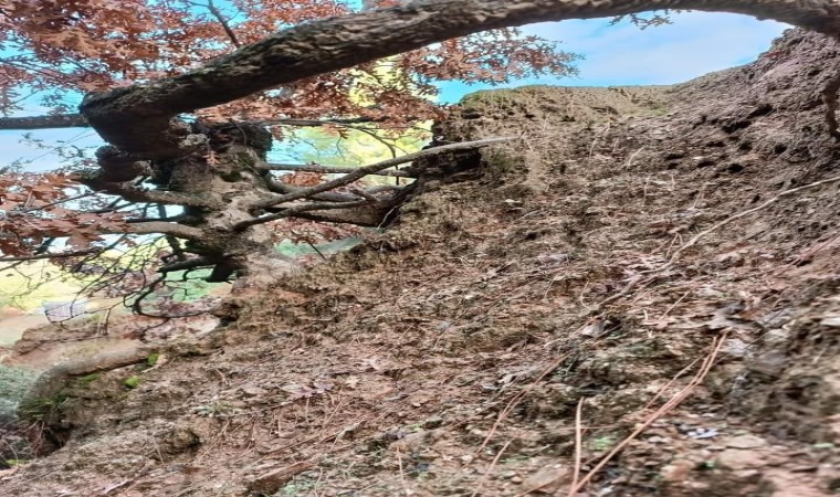 Manisa’nın Sarıgöl ilçesindeki bir yamaçta bulunan yaşlı meşe ağacı, köklerinin yarısı dışarıda yarısı toprakta hayata sımsıkı tutunan görüntüsüyle görenlerin ilgisini çekiyor.