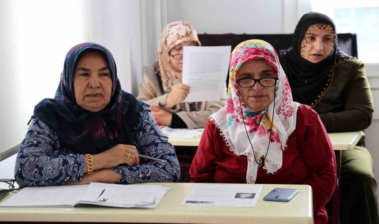 Adana’da aileleri tarafından zamanında okula gönderilmediği için okuma yazma öğrenemeyen yaşlı teyzeler, belediyenin açtığı kursta okuma yazma öğreniyor.
