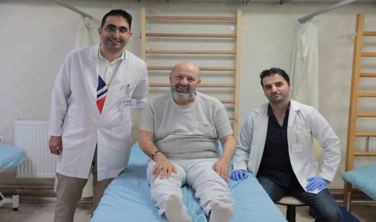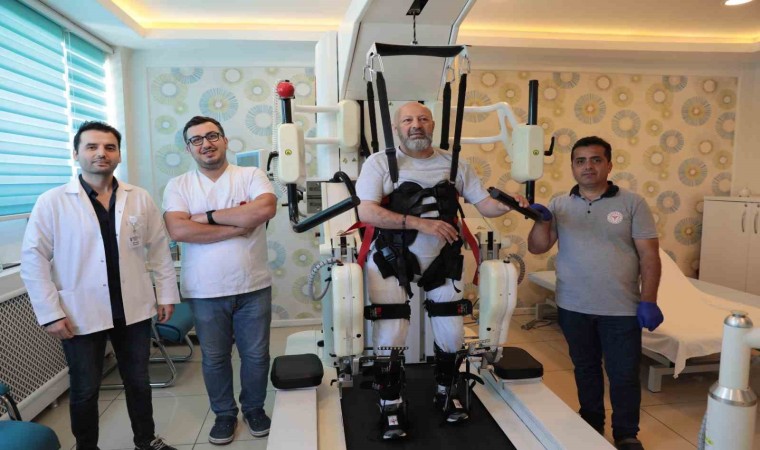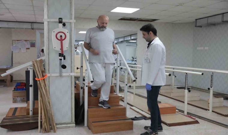 Fiziksel Tıp ve Rehabilitasyon Hastalıkları Uzm. Dr. Zafer Ceyhan, "Hastamız Metin Bey hastanemize sol tarafında inme geçirmesi, beyin kanaması sonucu hastanemize yatırıldı. Geldiğinde kolunda ve bacağında hareket yoktu. Biz hastamızı ilk başta yatak içi egzersizlerle başlayarak, daha sonra oturma dengelerini sağladık. Aynı zamanda profesyonel ekibimizle beraber yatak içi oturma dengeleri, daha sonra ayakta yürüme hareketlerine başladık. Hastanemizin avantajlarından biri erken dönemde fizik tedavi rehabilitasyon programına almaktayız. İnme hastalarını, omurilik yaralanması hastalarını ilk dönemde almaktayız. Bunun en önemli avantajı, ilk 6 ay bizim için en önemli periyottur. Bu dönemde sinir iyileşmesinin en hızlı olduğu dönemdir. Bu hastamız da bize böyle şekilde başvurdu. Erken dönemde fizik tedavilerine başladık. Aynı zamanda robotik tedavimize, yürüme cihazımıza aldık. Hasta şu an mevcut durumunda kendi bağımsız yürüyebilmekte, kendi işlevlerini yapabilmektedir. Geldiğinde tamamen hareketsizdi, tamamen yatağa bağımlıydı. Artık kendi başına oturup kalkabilen, hatta koşabilen bir hastaya dönüştü. Burada tabii ekibimizle beraber hastanın ailesinin de etkisi çok fazla, hastanın kendi isteği çok fazla, motivasyonu çok iyi. Rehabilitasyona uyumu çok iyi. Hastanemizde ortalama 100 yatağı olan bir servisimiz mevcut. Burada 70 civarında böyle felçli hastaları yatırmaktayız. En önemlisi erken dönemde almaktayız, iyileşmeleri hızlı olsun diye. Genel olarak ilk 6 ay çok önemli. Bu dönemde de biz fizik tedaviyle bu potansiyeli yakalamaktayız. Tabii, burada hastanın katılımı da çok önemli" diye konuştu.