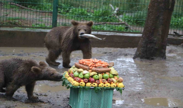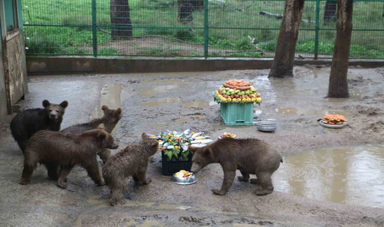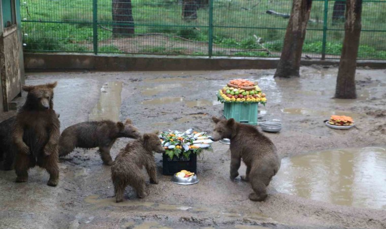 Bursa ve Giresun’da doğada yaralı halde bulunup Bursa’da tedavi altına alınan 5 yavru ayı için 1. doğum günü kutlaması yapıldı.