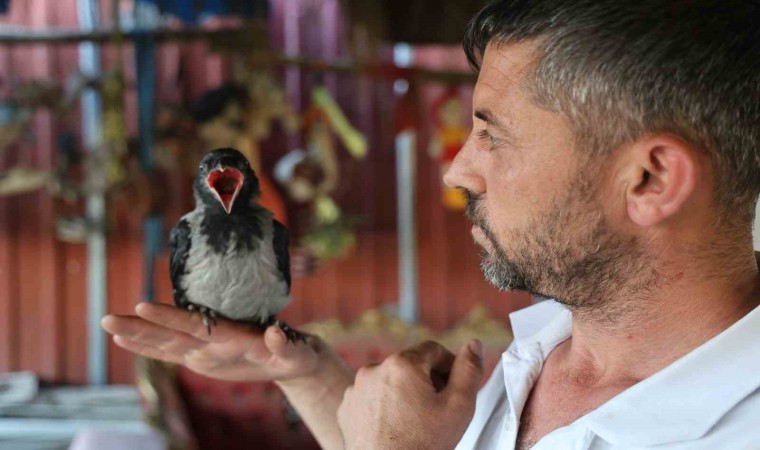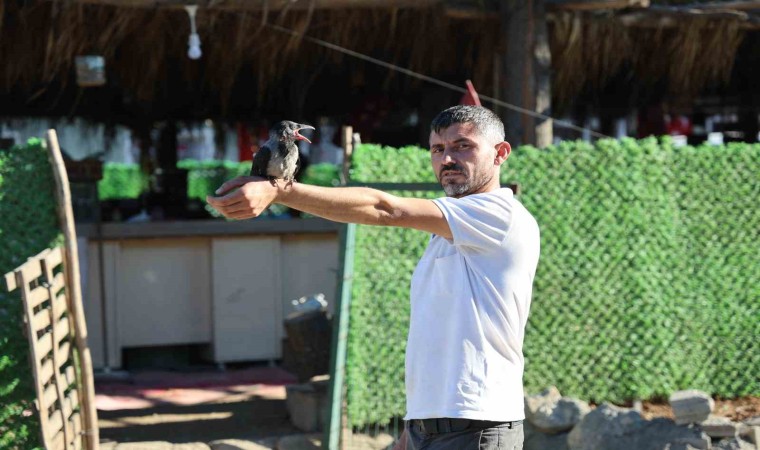Depremlerin yıl dönümünde enkazın yoğunluklu olduğu bölgede ortaya çıkan yavru karga ise enkaz kafenin 4 aydır misafiri. Yavru kargayı besleyip bakan Yalçın, enkaz kafeye gelenlerin de beğenip sevdiğini ifade ediyor.