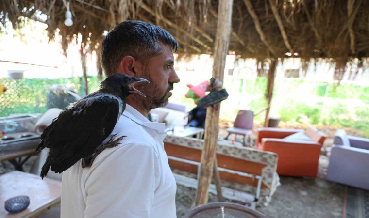 Yalçın, “Asrın felaketi deprem sonrası bu kafeyi kurdum ve vatandaşlarımızla acılarımızı paylaşıyoruz. Depremlerin yıl dönümünde adını ‘Enkaz’ koyduğumuz kargamızı enkazda buldum ve enkaz kafeme getirdim. Kargamız konuşmaya başlıyor ve anlıyor bizi. Seviyoruz yem veriyoruz bizim buranın maskotu oldu. Enkazın arasından canlanıp filizlenmek için kendisi de yıl dönümünde geldiği için adını enkaz koydum. Biz de bu karga gibi bir gün kanatlanıp uçacağız” dedi.
