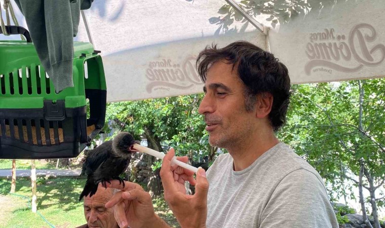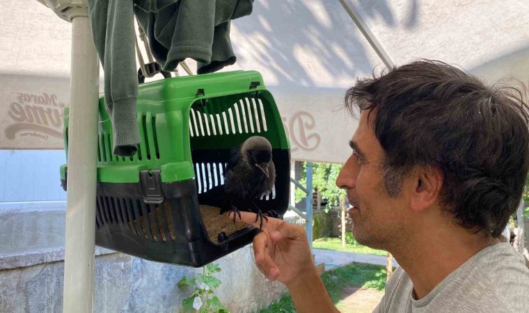 Yaklaşık bir aydır evlerinin bahçesinde besledikleri yavru karganın kendilerine alıştığını belirten Atilla Yıldız, başka hayvanların zarar vermemesi için bebekler gibi baktığını söyledi. Yıldız, “Kuzenim yavrunun uçarken düştüğünü görmüş ve zarar gelmesin diye buraya getirdi. Biz de yavruyu besliyoruz. Suyunu veriyoruz, mamasını veriyoruz. Başka hayvanlar zarar vermesin diye elimizden geleni yapıyoruz” dedi.