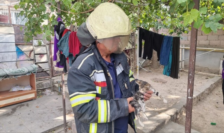 Kayseri’nin Kocasinan ilçesinde meydana gelen yangında ikametteki yavru kediyi alevlerin arasından itfaiye ekipleri kurtardı.