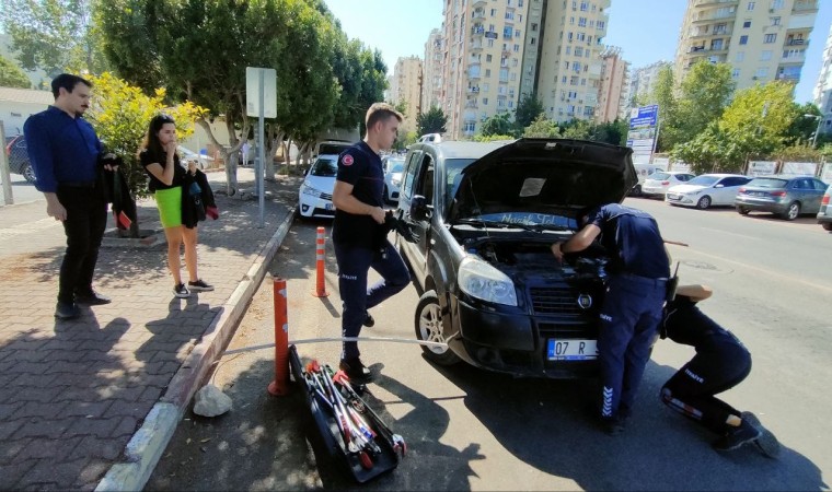 Olay, Muratpaşa ilçesi Meltem Mahallesi İsmail Baha Süralsan Caddesi üzerine meydana geldi. 07 R 3841 plakalı hafif ticari aracıyla Varsak’a doğru seyir halindeki Nazif Kol, kedi sesi duyunca sağa park etti. Motor bölümünden kedi sesi geldiğini duyan Kol, kendi imkanlarıyla kediyi çıkaramayınca durumu 112 Acil Çağrı Merkezi’ne bildirdi. İhbarla adrese Antalya Büyükşehir Belediyesi itfaiye ekipleri geldi. İlk olarak kedinin bulunduğu noktayı tespit eden ekipler, kurtarma çalışmasına başladı. Aracın altından ve üstünden kediyi bulunduğu yerden çıkarmaya çalışan ekipler büyük çaba harcadı. Elinde eldiven bulunan kadın itfaiyeci motor bölümündeki kediyi yakaladı. Korktuğu gözlemlenen yavru kediyi, bir kadın avukat bakımı için veterinere götürdü.