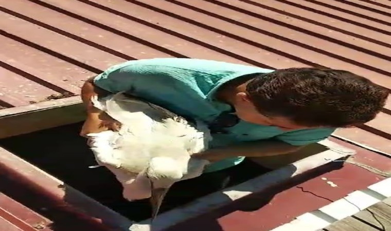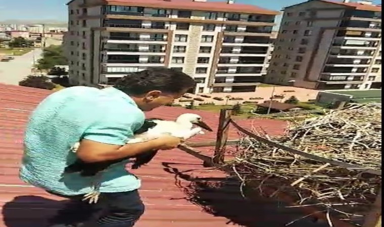 Sivas’ta okulun çatısında bulunan yuvasından düşen yavru leylek okul müdürü tarafından geri yerine konuldu. Okul müdürünün canı pahasına yaptığı davranış takdir topladı.