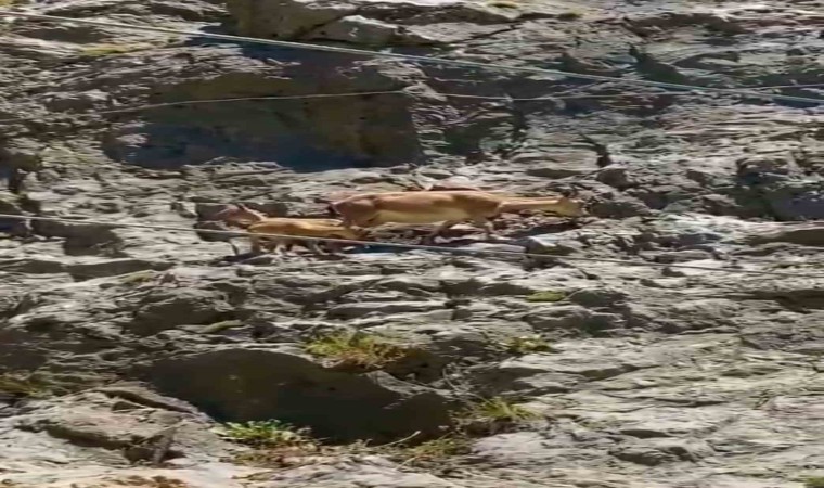 UNESCO Dünya Geçici Miras Listesi’nde yer alan kapalı ekosistemi, coğrafi yapısı ve doğal güzellikleriyle birçok hayvan türüne ve yaban hayatına ev sahipliği yapan Karanlık Kanyon’da yavrularını emziren dağ keçileri görüntülendi. Yerli ve yabancı turistler tarafından seyredilen bu anlar cep telefonu kameralarına yansıdı. O anlar izleyenleri tebessüm ettirdi.