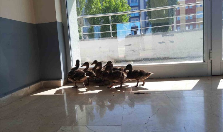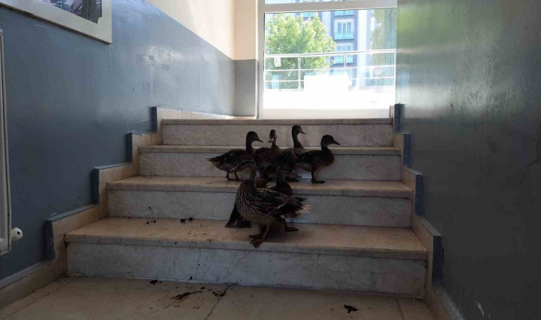 Stadyumun koridorlarında dolaşan yaban ördeği ve 6 yavrusu DKMP ekiplerince bulunduğu yerden alınarak tekrar doğal yaşam ortamlarına bırakıldı.