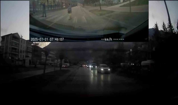 Amasya’da yaya geçidinden geçmekten olan yayaya yol veren otomobile arkasından gelen başka bir otomobil çarptı. Kaza anı başka bir otomobildeki araç kamerasına yansıdı.