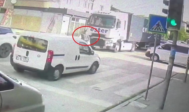 Kaza anı iş yerinin güvenlik kamerasına yansıdı. Görüntülerde kırmızı ışıkta tırın durduğu, yeşil ışıkta hareket haline geçerken yola çıkan yayaya çarptığı görüldü.