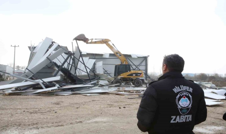 Nilüfer Belediyesi, kaçak yapılarla mücadelesini kararlılıkla sürdürüyor. Son olarak Yaylacık Mahallesi’nde imara aykırı inşa edilen 500 metrelik kaçak depo yerle bir edildi.