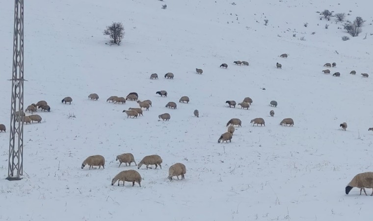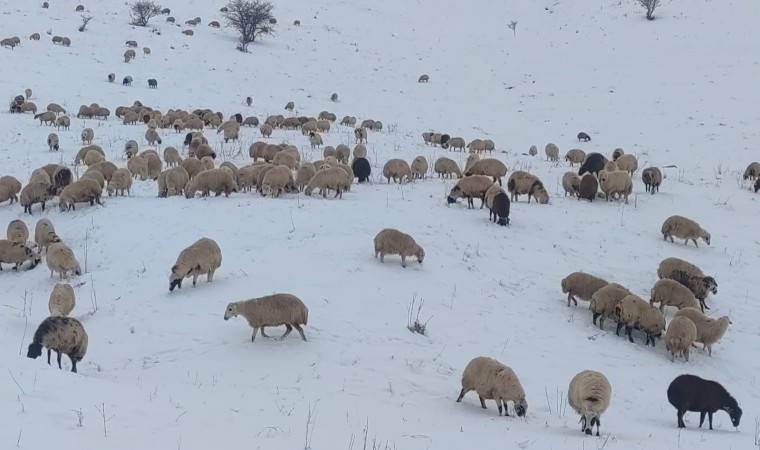 Öte yandan yine Aşkale’nin Sarıbaba köyünde koyunculuk yapan çiftçi de erken bastıran kar yağışı nedeniyle hayvanlarının kışlık yiyeceğini tam temin edememesi neticesinde karla kaplı dağlarda koyunlarını otlattı.