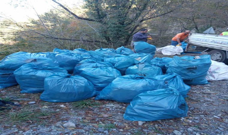 Hatay’ın Dörtyol ilçesinde bölge sakinlerinin vahşi çöp depolama alanı olarak kullandığı vadideki çöpler, belediye ekiplerince zorlu şartlarda titizlikle toplandı.