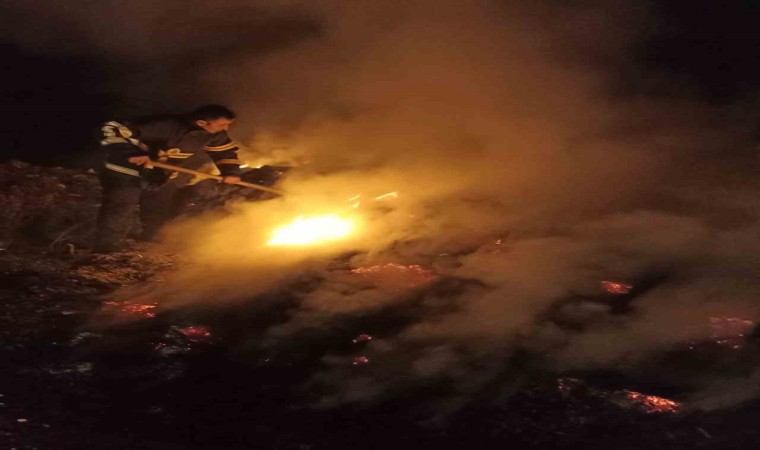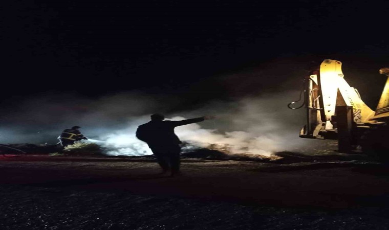 Hatay’da zeytin yağı sıkımdan geriye kalan zeytin posası alevlere teslim oldu.