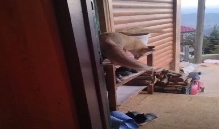 Bayburt’un Aydıntepe ilçesine bağlı Çençül Yaylasında Saral ailesinin davetsiz misafiri aç kalan tilki oldu.