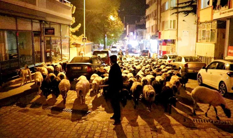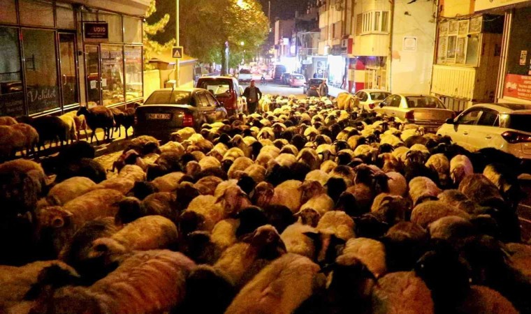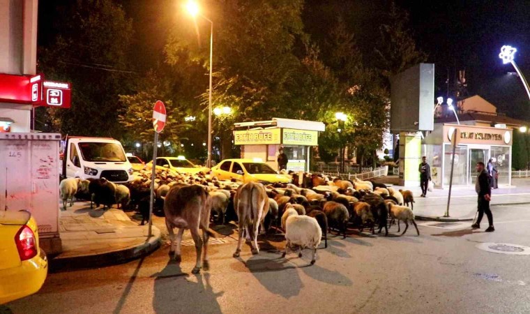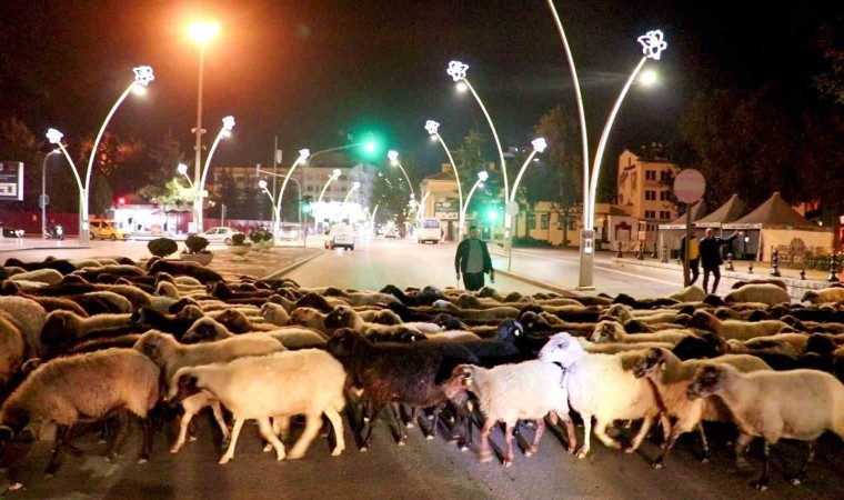 Tokat’ta havaların soğumasıyla birlikte yaylada bulunan koyunların geri dönüşü başladı, yayladan inen bir koyun sürüsü şehir merkezinden geçti.