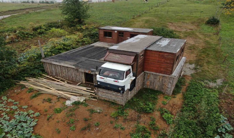 Trabzon’un Düzköy ilçesinde yaşayan Nejmi Küçüker, 6 yıl önce üzerindeki ahşap yapısı ile karavan olarak aldığı 1980 model kamyonu yaylada yaptığı ahşap evinin beton direkleri üzerine kondurdu. Trabzon’un Düzköy ilçesinin bin 800 rakımlı Haçka Yaylası’ndaki kamyonkondu, görenlerin büyük ilgisini çekiyor.
