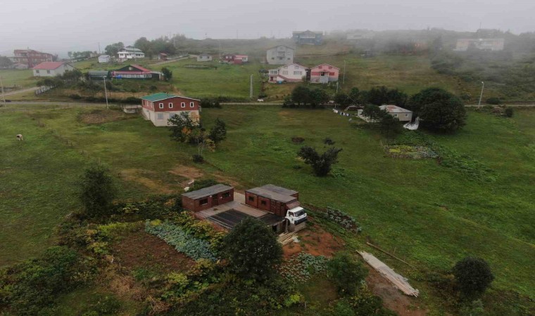 Düzköy ilçesinde yaşayan ve uzun yıllardır tır şoförlüğü yapan evli ve 1 erkek çocuk sahibi Nejmi Küçüker (48), 6 yıl önce Samsun’da gördüğü kamyon üzerindeki ahşap evi satın aldı. Karavan olarak yapılan 1980 model Ford marka kamyonu yaşadığı ilçenin Haçkalı Yaylası’na getiren Küçüker, bir süre kullandığı karavanı 2 kez satmak zorunda kaldı. Kamyonun manevi değeri nedeniyle 2 kez satmasına rağmen geri alan Küçüker, 4+1 şeklinde yapılan 20 metrekarelik ahşap evinin bulunduğu kamyonu yaşı nedeniyle trafikten çekmek zorunda kaldı. Ahşap evinden kopamayan Küçüker emekli olduktan sonra ailesiyle birlikte vakit geçirmek için bir proje geliştirdi. Kamyonetin alt takımından hiçbir parçayı sökmeyen Küçüker kamyoneti lastikleri ile beraber arsasına kurduğu beton direkler üzerine kondurdu. Bin 800 rakımlı yaylaya getirdiği vinç yardımıyla kamyoneti havaya kaldırarak beton direkler üzerine konduran Küçüker, iki parça halindeki ahşap evini arsasına yerleştirdi. Geçen yıl başladığı projesini imkan buldukça zaman ayırmaya çalışan Küçüker’in yayladaki kamyonkondusu yerli ve yabancı turistlerin ilgisini çekiyor.
