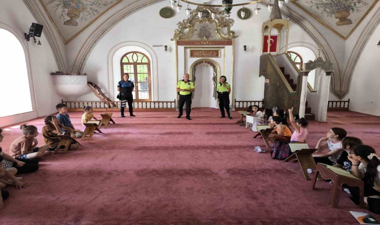 Muğla Emniyet Müdürlüğü Trafik Tescil ve Denetleme Şube Müdürlüğü ile Toplum Destekli Polislik Şube Müdürlüğü personeli tarafından Menteşe ilçesindeki yaz Kur’an Kurslarında eğitim gören öğrencilere yönelik trafik kuralları ve kişisel güvenlik konularında eğitim programı düzenlendi.