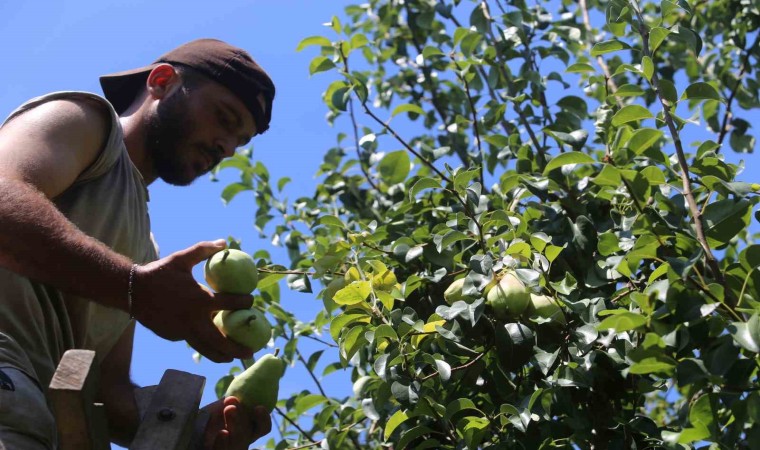 İşçi bulmanın zor olduğunu kaydeden Uğur, 40 dereceleri bulan sıcaklıklara rağmen üniversite öğrencilerinin tarlada hasada destek verdiklerini söyleyerek, "Normalde çalıma saatlerimiz 8.00-17.00 ama biz 6.00-15.00 arasında çalışıyoruz. Yapılan anlaşmaya göre farklı saatlerde de çalışan var. Armudun budaması eylül ayında başlayıp nisan ve mayıs ayına kadar devam ediyor. Şubat ayında da ilaçlaması başlıyor. Armudun bu zamana kadar gelmesi çok zorlu bir süreçten geçiyor. Armut ağacının yetişmesi aşağı yukarı 30 yıl sürüyor. 100 dönüm kadar Santa Maria hasadı yapılıyor. 20’şer kişiden oluşan 3 grup halinde çalışıyoruz. 5-6 kişi günde 20 ton mal topluyor. İşçi bulmak biraz zor. Daha doğrusu işini iyi yapan yok. Üniversite öğrencileri bize destek oluyor. İşçilerin aldığı para çalışma saatine göre değişiyor. 900 liraya da çalışan da var, bin liraya da çalışan var. Armudun kilosunun fiyatı tarladan çıkma büyük boy 35 lira, küçük boyları ise 17-18 lira arası" diye konuştu.