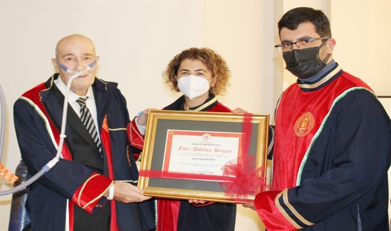Amasya Üniversitesi Senatosu, Yazar Sadi Bayram’a fahri doktora verdi. Tedavi gördüğü hastanede biniş giyip doktora belgesi alan 80 yaşındaki Bayram’a sürpriz yapan Amasya Üniversitesi Rektörü Prof. Dr. Ahmet Hakkı Turabi, müzik eşliğinde canlı bağlantıyla şarkı da okudu.