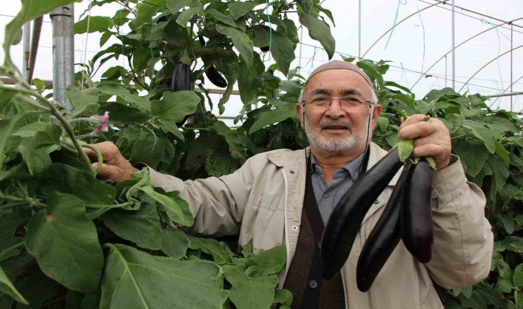 Amasya’da bir çiftçi domates serasında direklerin altındaki boş alanlara dikip yaz boyunca sattığı patlıcanları havalar soğumayınca sökmeyerek yetiştirmeyi sürdürdü. Yazın kilosunu 5 liradan pazarladığı patlıcanları bu kış günlerinde 3 katından daha fazla fiyata 17 liradan satarak kazancını artırdı.