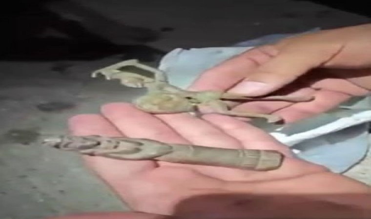 Kahramanmaraş’ta bir aracın yedek lastiğinden iki kaçak tarihi eser çıktı.