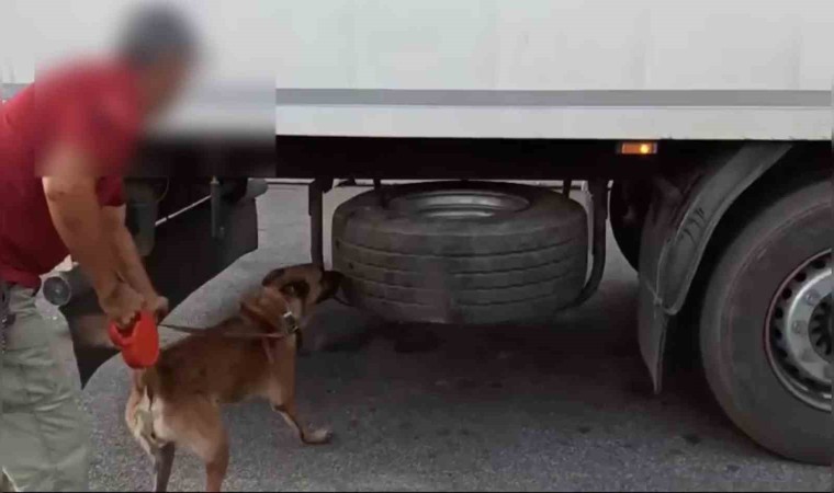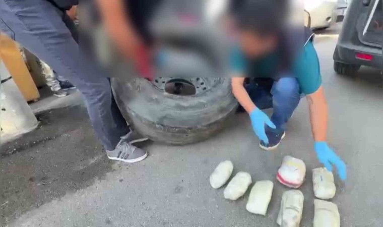 Adana Emniyet Müdürlüğü Narkotik Suçlarla Mücadele Şube Müdürlüğü ekipleri, Tarsus-Adana-Gaziantep otoyolunun şehir merkezi istikametine doğru şüphelendiği bir tırı durdurdu. Narkotik köpeği araçta yaptığı aramada, yedek lastiğine tepki verdi.