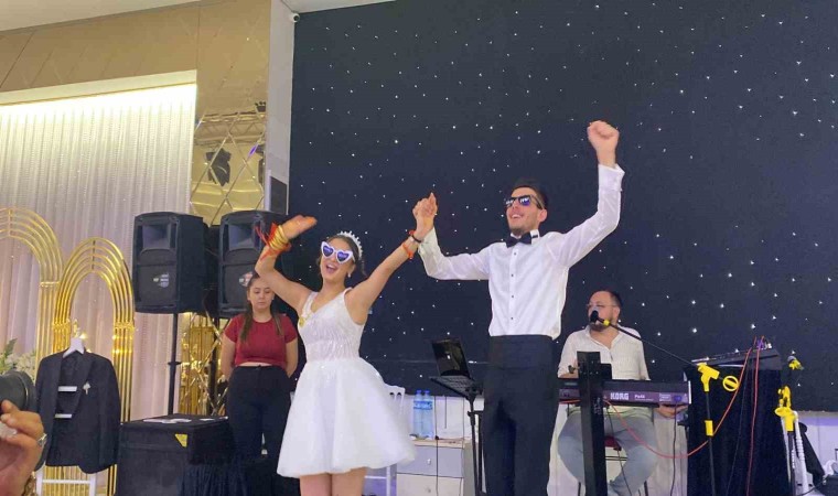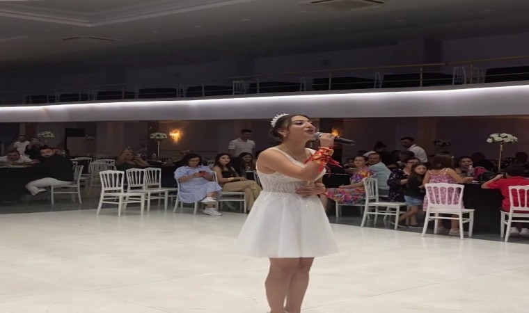 “Ortaokulu beraber okuduk, ön sıramda oturuyordu. Lisede okullarımız ayrılmıştı. Lise 2’de 2018’de tekrar konuşmaya başladık. O zamandan bu zamana kadar konuşmaya başladık. Aramızda çıkan problemler de bizi daha sıkı birbirimiz bağladı. Düğünümüzde de bu şarkıyı söylemek istedim. Çünkü okulda tahtaya çıktığımda da bu şarkıyı söylüyordum. Bu şarkı tek bir kişiye aitti benim için. Bunu da düğünümde kullanmak istedim. Bizim ilk girişimiz merdivenden ve büyük bir gelinlikle indim. Biz takı ve pastadan sonra geri gittik. Orada şarkı söylerken girişimiz sonradan olandı. Şarkı söyleyerek girmek istedim, davetliler de kadın sanatçı tuttuğumuzu sanmışlar.”