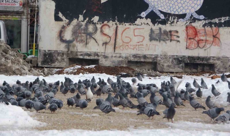 Van’da yaklaşık 25 yıl önce buğday pazarından dolayı bölgeye alışan binlerce güvercin, yıllar önce pazarın yıktırılarak parka dönüştürülmesine rağmen alandan ayrılmıyor. Özellikle kış mevsiminde yiyecek bulamayan binlerce güvercin, barınak edindikleri çatılarda saatlerce esnafın yem atmasını bekliyor. Aç kalan güvercinlere kahvehane işletmecisi Mevlüt İzci başta olmak üzere, çevre esnafı sahip çıktı. Esnaf, günlük olarak kuşları arpa ve buğdayla besliyor. Karın yağmasıyla beraber atılan yemlere akın eden kuşların uçuşuyla oluşan şölen ise göz kamaştırıyor.