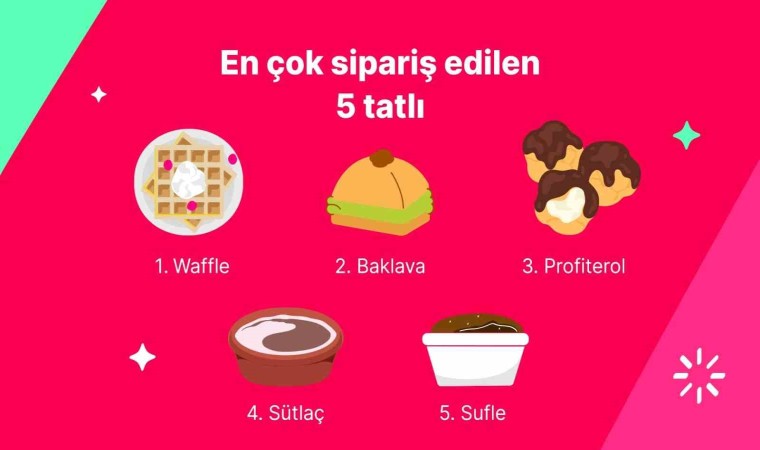 Tatlı siparişlerinde gençlerin favorisi olan waffle, bu yıl da zirvede yer aldı. Geleneksel tatlardan baklava ve sütlaç, modern lezzetlerle birlikte sıralamadaki yerini korudu.