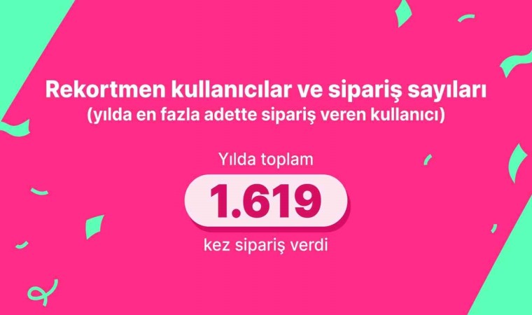 Yemeksepeti, 2024 yılında da kullanıcılarının yoğun ilgisiyle rekorlara sahne oldu. Yıl boyunca bir kullanıcı, tam bin 619 kez sipariş vererek öne çıktı. Siparişlerin en yoğun olduğu saat aralığı ise 18.00-19.00 olarak kaydedildi.