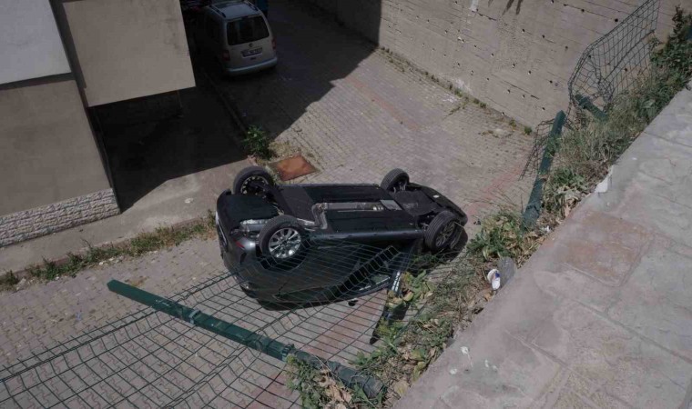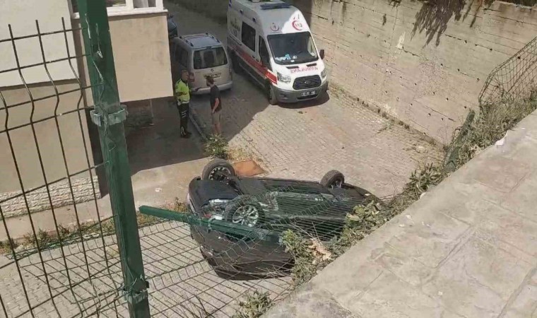Edirne’de kısa bir süre önce aldığı arabasıyla seyir halindeyken 5 metrelik duvardan site bahçesine uçan otomobilin sürücüsü ve oğlu yaralandı.