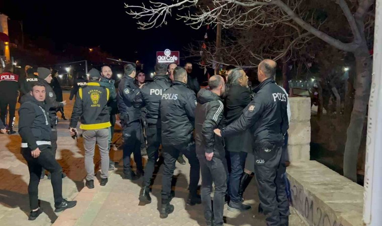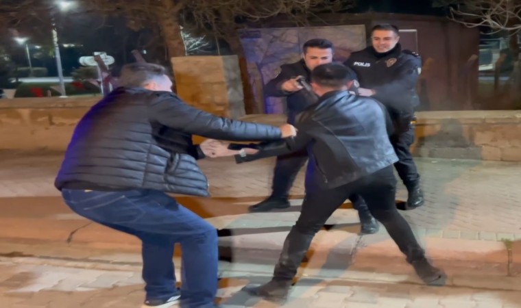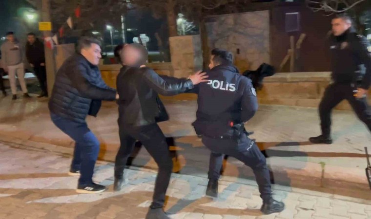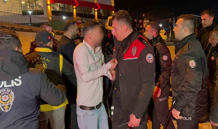Olay saat 01.00 sıralarında Bayrambaba Mahallesi 3502 sokakta bulunan alkollü bir mekanda yaşandı. Edinilen bilgiye göre, alkollü eğlence mekanında 2 grup arasında “Yan baktın” meselesi yüzünden tartışma çıktı. Tartışmanın kavgaya dönüşmesi üzerine 2 grup birbirine girerken kavgaya diğer masadaki müşterilerin de girmesi üzerine yaklaşık 20 kişi birbirine girdi. Mekan sahibinin durumu 112 Acil Çağrı Merkezi’ne bildirmesi üzerine olay yerine çok sayıda polis ve sağlık ekibi sevk edildi. Kısa sürede olay yerine gelen polis ekipleri kavgaya müdahale ederek şahısları araladı. 6 kişinin darp sonucu yaralandığı kavgada 2 tarafın da birbirinden şikayetçi olması üzerine polis ekipleri şüphelileri gözaltına almak istedi. Gözaltına alınmak istemeyen şüpheliler ile polis arasında tartışma yaşanırken, 2 şahsın polis memuruna vurmasının ardından ortalık karıştı. İl Emniyet Müdürlüğü Asayiş Şube Müdürü Serkan Özbaş’ın da müdahale ettiği olayda şüpheliler polis ekiplerine zor anlar yaşattı. Polis memuruna vuran ve güçlük çıkaran Hasan K. (35) ve İzzet K. (35), Fatih K. (29), Oğuzhan K. (27) ve Ekrem K. (26) olmak üzere 5 şüpheli biber gazı ile etkisiz hale getirilerek ters kelepçeyle gözaltına alındı. Şüpheliler Aksaray Eğitim ve Araştırma hastanesi Acil Servisi’nde tedavi edildikten sonra ifadeleri alınmak üzere Aksaray Polis Merkezi’ne götürüldü. Aksaray Cumhuriyet Başsavcılığının olayla ilgili başlattığı soruşturma sürüyor.